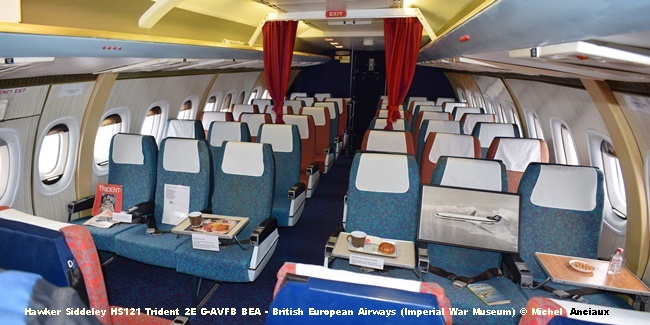 As presented, the Trident came in 5 models, the first being the Trident 1C with 43.8kN (9,850 lbst) Rolls Royce Spey Mk 505F engines for a maximum take-off weight of 53,200kg (117,300 lb) and an autonomy. Flight of 1,800 km (1,150 miles) at a cruising speed of 946 km / h (511 kt). Its passenger capacity was 96 in BEA configuration.