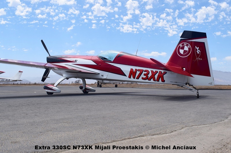 El nuevo Extra 330SC de Mijali Proestakis participando en el Festival Aéreo 2026 en la Serena.
