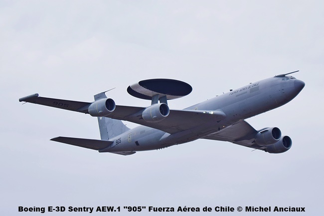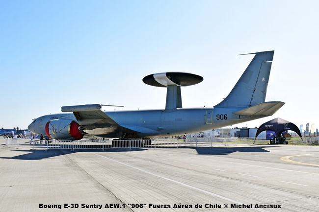En la zona de presentaciones estáticas, 3 modelos que pueden haber llamado la atención fueron el Boeing E-3D Sentry AEW.1, avión con sistema de alerta y control aerotransportado (AWACS).
