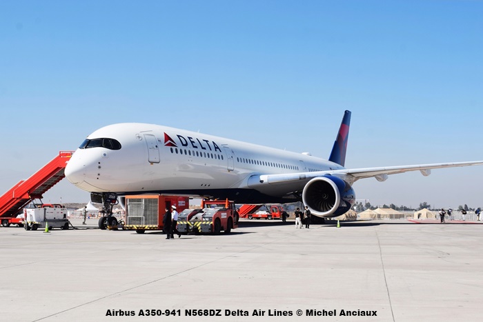 Delta Airlines presento el Airbus A350-941 con matrícula N568DZ y la particularidad propia a esta matricula es que el 15 de diciembre de 2015 fue el primer Airbus A350 entregado a una línea aérea del continente americano siendo esta TAM Linhas Aéreas de Brasil. Y para destacar esta particularidad, el avión llevaba la inscripción «Primeiro A350Xwb das Américas – The America’s First A350Xwb».