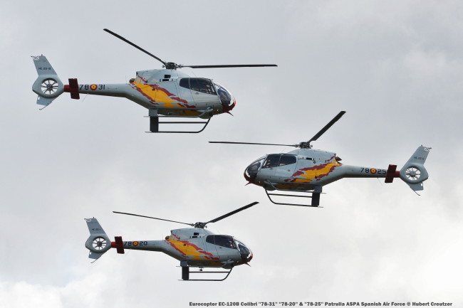 4 octubre, 20174 octubre, 2017michelanciaux DSC_3563 Eurocopter EC-120B Colibri »78-31» »78-20» & »78-25» Patrulla ASPA Spanish Air Force © Hubert Creutzer